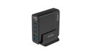 A töltő összesen 5 USB-porttal (3x USB-C és 2x USB-A) van felszerelve, amelyek lehetővé teszik különböző eszközök egyidejű csatlakoztatását és töltését.